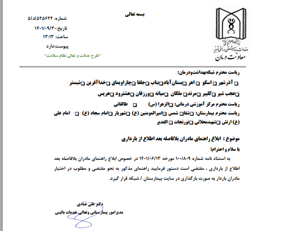 ابلاغ راهنمای مادران بلافاصله بعد اطلاع از بارداری