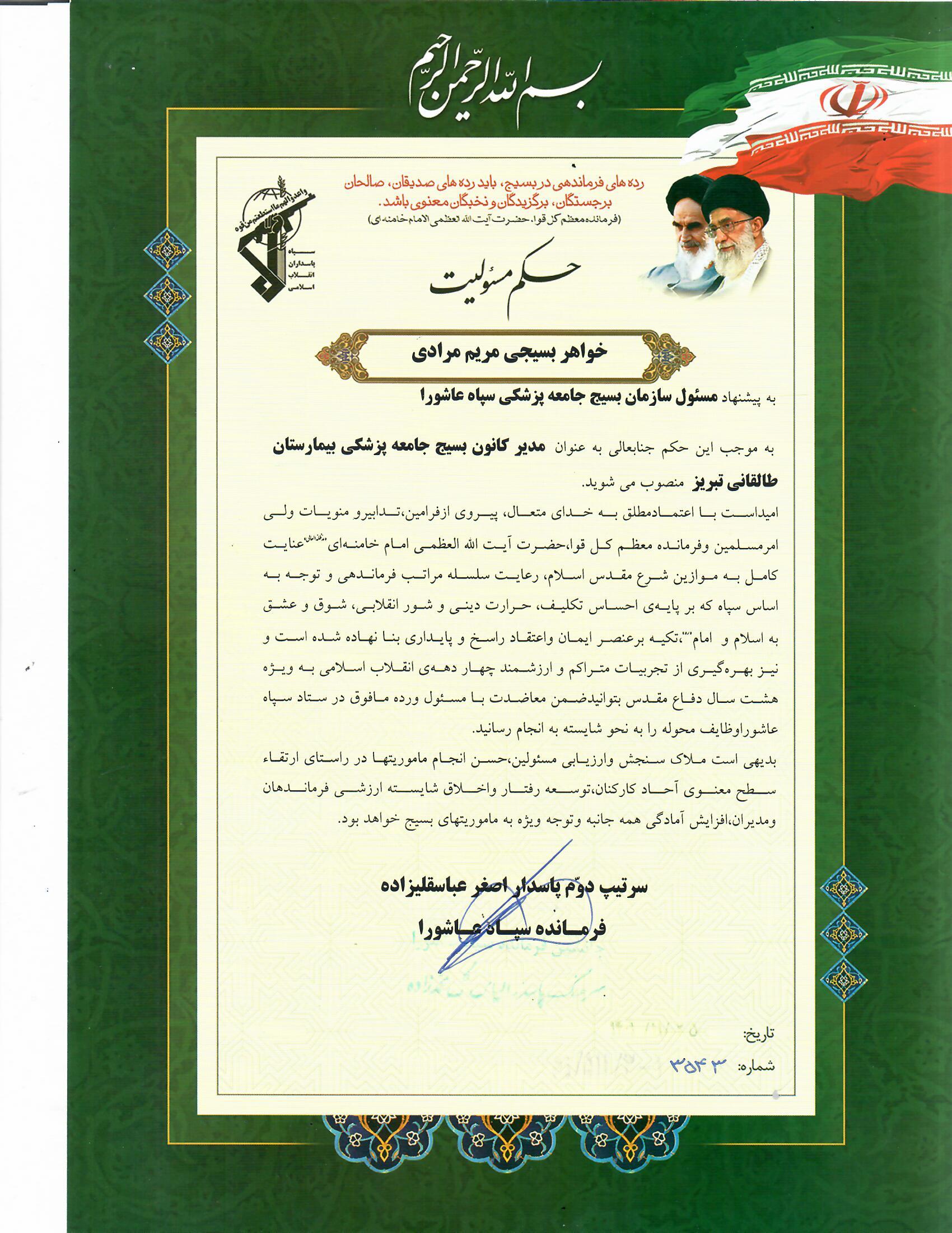 انتصاب خانم مرادی بعنوان مسئول بسیج