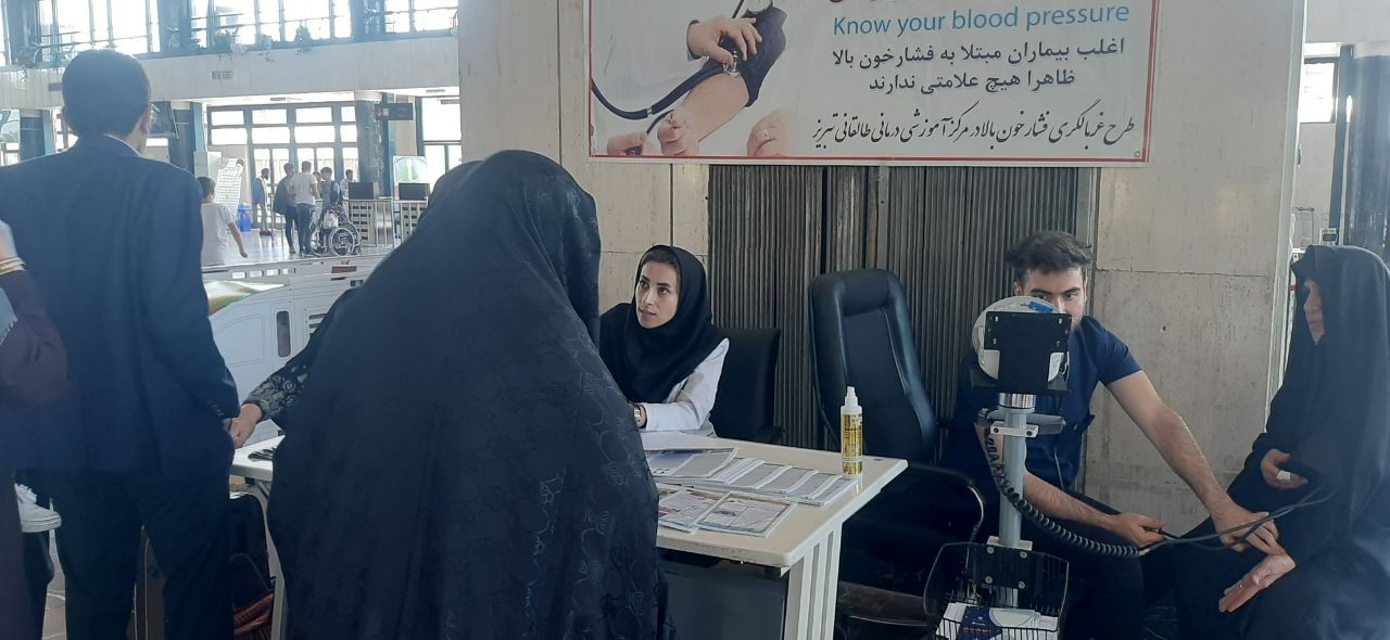 جهت گرامیداشت روز جهانی فشارخون بالا ۲۷ اردیبهشت غرفه های غربالگیری فشار خون بطور همزمان در مکانهای ایستگاه راه آهن تبریز و بیمارستان طالقانی تبریز از ساعت ۱۰ الی ۱۷ توسط واحد آموزش سلامت مرکز برپا گردید. ضمن اندازه گیری رایگان فشار خون برای عموم مردم و اسکرین افراد در معرض خطر و معرفی به کلینیک قلب .پمفلتهای تغذیه سالم و فشارخون توسط کارشناسان محترم ارایه گردید.