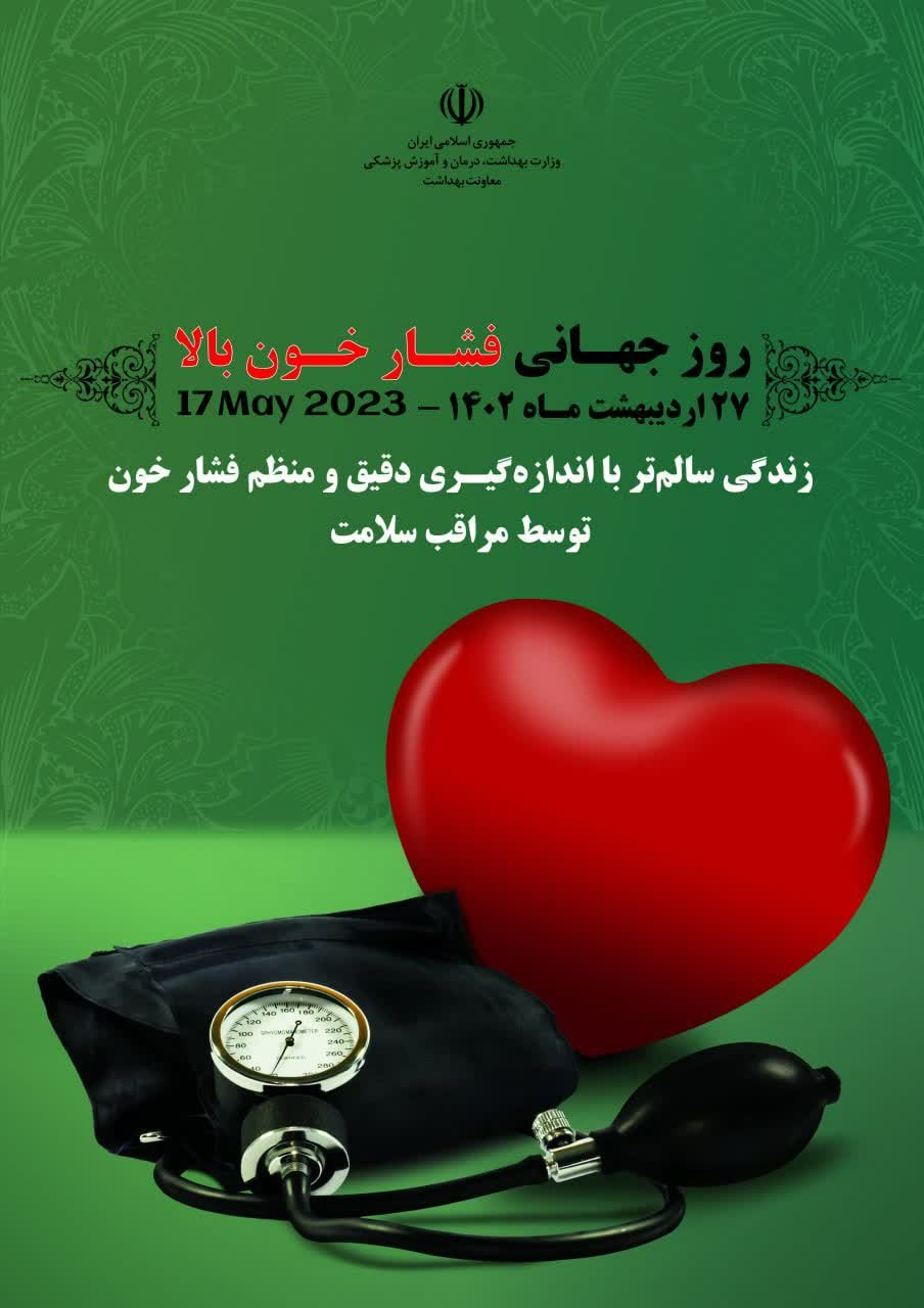 27 اردیبهشت ماه 1402 روز جهانی فشار خون بالا با شعار زندگی سالم تر با اندازه گیری دقیق ومنظم فشار خون توسط مراقب سلامت