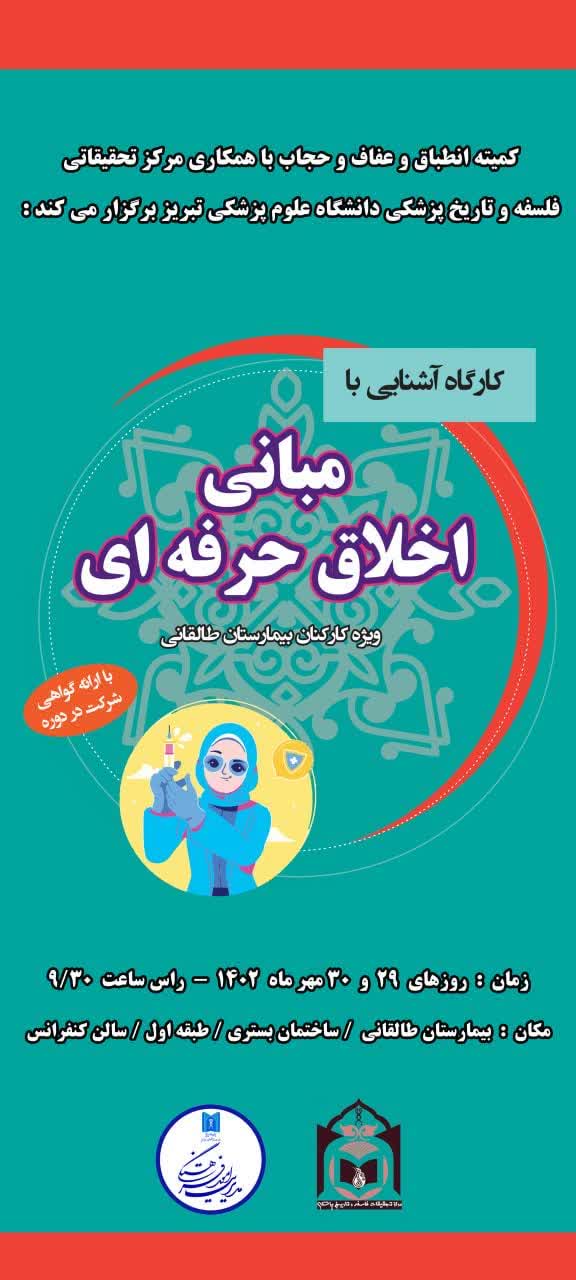ویژه کارکنان بیمارستان طالقانی با همکاری کمیته انطباق و عفاف و حجاب و مرکز تحقیقات فلسفه و تاریخ پزشکی دانشگاه علوم پزشکی تبریز