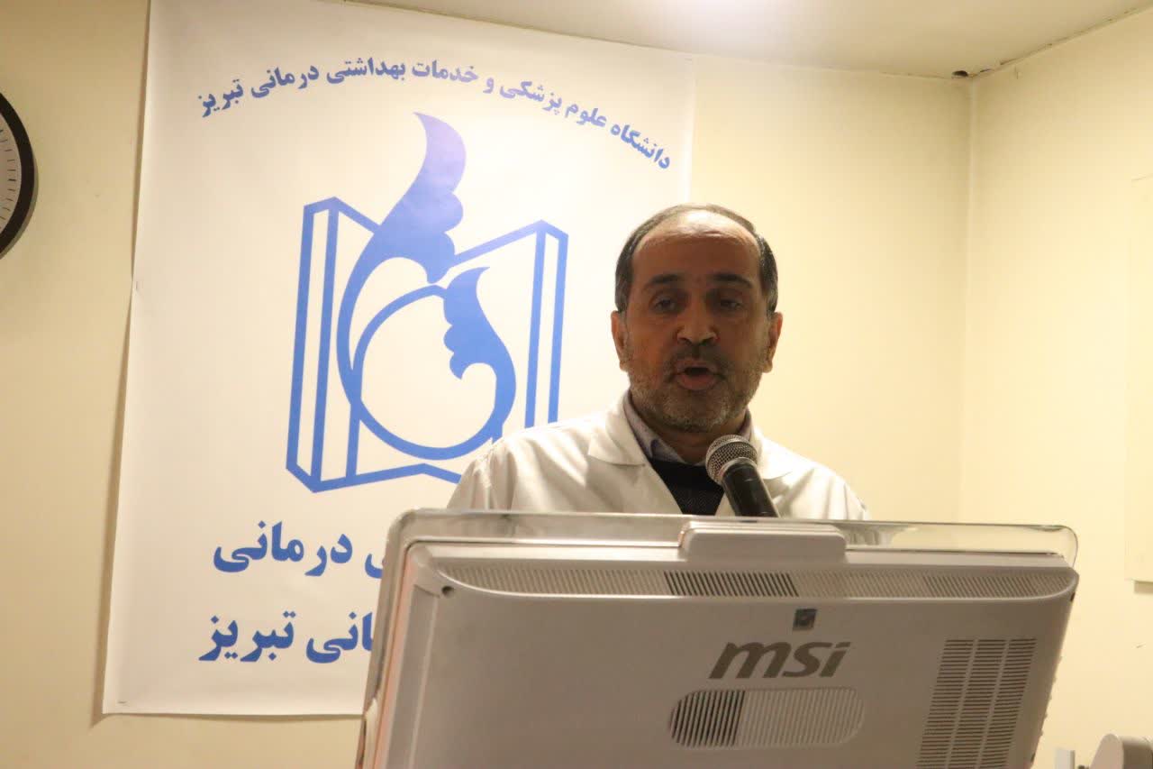در این مراسم معاون محترم درمان دانشگاه علوم پزشکی تبریز جناب آقای دکتر احمدیان ضمن قدردانی از زحمت کشان این عرصه، یاد شهدای سلامت و شهدای غزه و هفته بسیج را گرامی داشتند. همچنین از قرار گرفتن مدیریت پرستاری دانشگاه علوم پزشکی تبریز جز سه مدیریت برتر کشور خبر دادند. دکتر احمدیان از افزایش ظرفیت پذیرش اعمال جراحی در مرکز طالقانی تقدیر نمودند و ار متناسب سازی نیروی انسانی با افزایش ظرفیت بخش های بستری خبر داند. وی تحقق اجرای تعرفه خدمات پرستاری را بعد از چنین سال را رویدادی مهم و گامی موثر در قدردانی از این بزرگواران دانستند. همچنین جناب آقای دکتر منصور رضائی ضمن خیر مقدم به میهمانان این مراسم از زحمات ستودنی کادر درمان بخصوص پرستاران قدردانی نمودند و یاد و خاطره شهدای مدافع حرم و مدافع سلامت و شهدای غزه و هفته بسیج را گرامی داشتند.