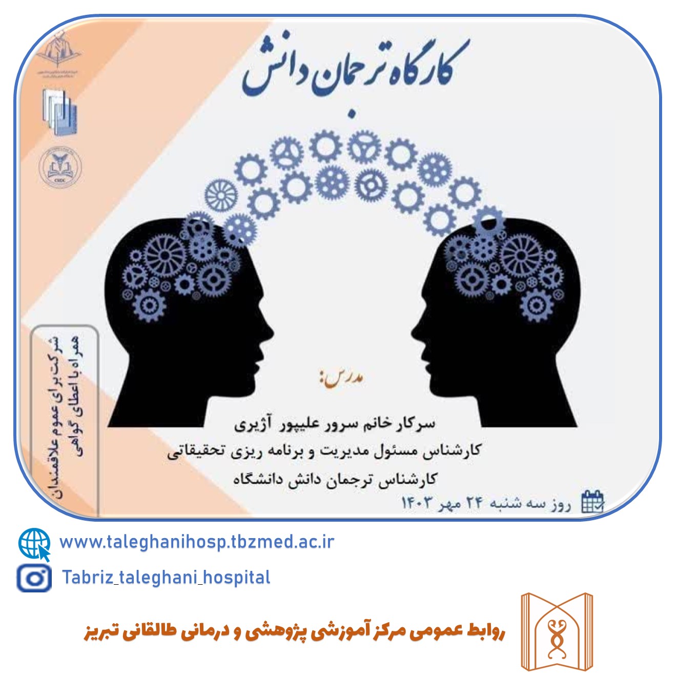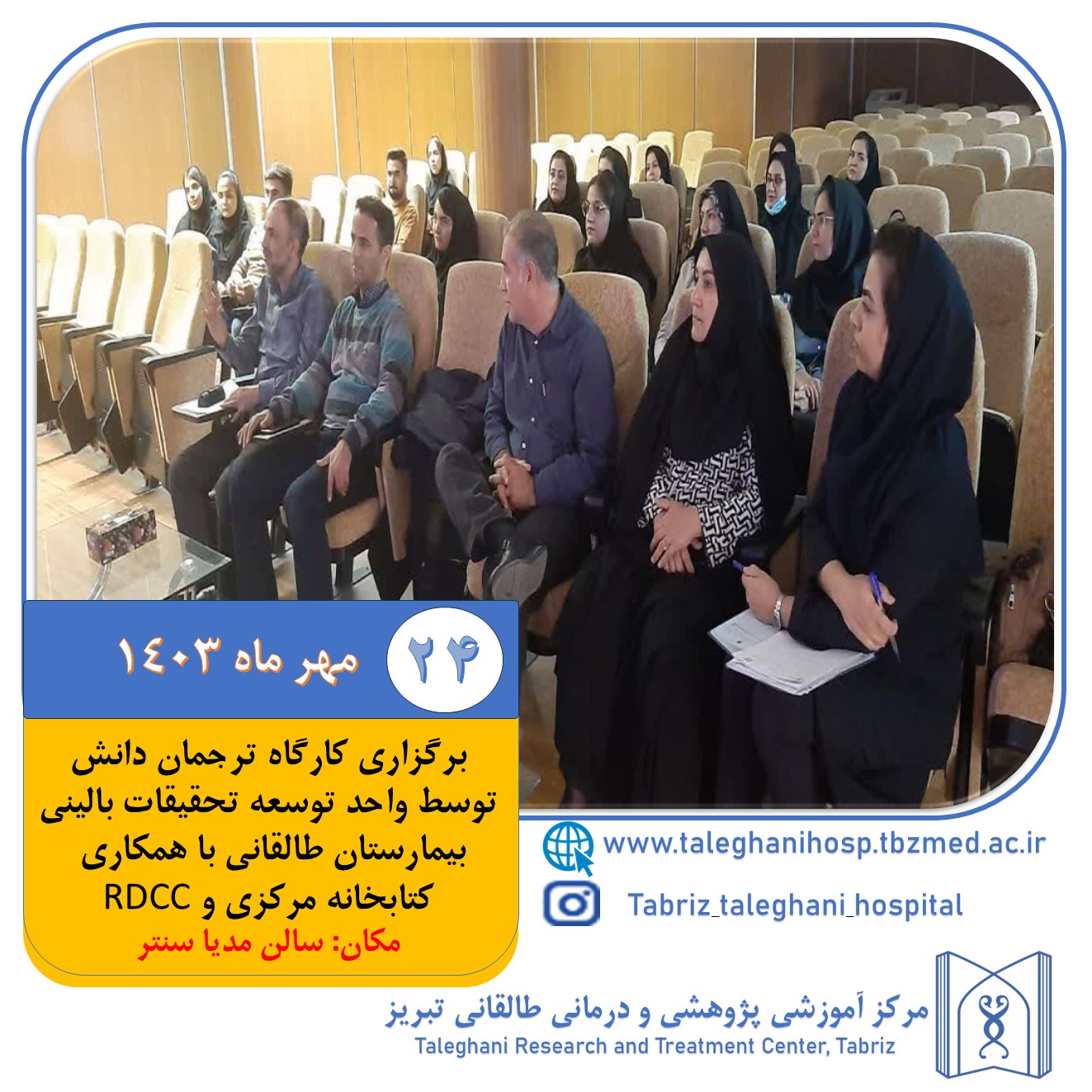 برگزاری کارگاه ترجمان دانش توسط واحد توسعه تحقیقات بالینی مرکز