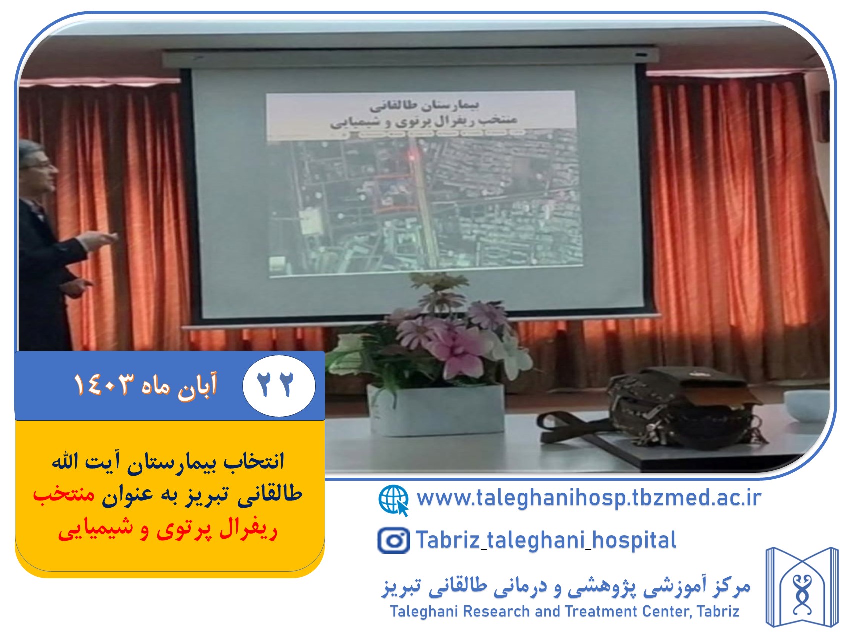 انتخاب بیمارستان آیت الله طالقانی تبریز به عنوان منتخب ریفرال پرتوی و شیمیایی