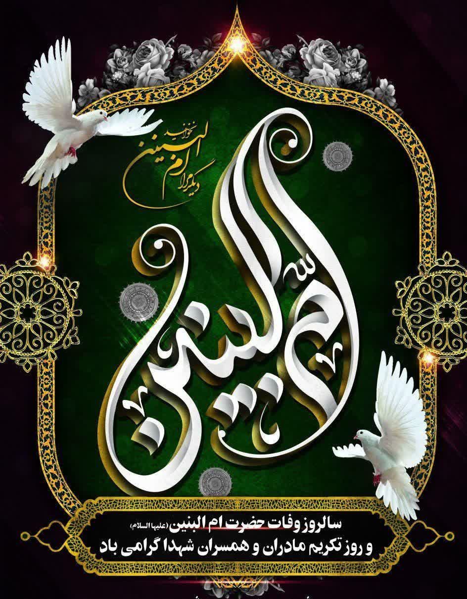 سالروز وفات حضرت ام البنین (ع) و روز تکریم مادران و همسران شهدا گرامی باد.